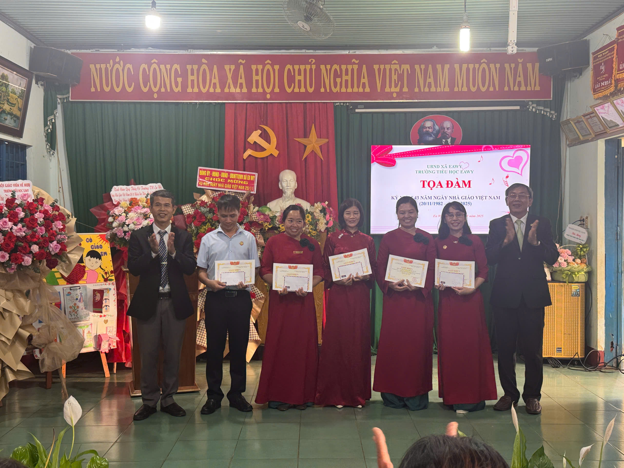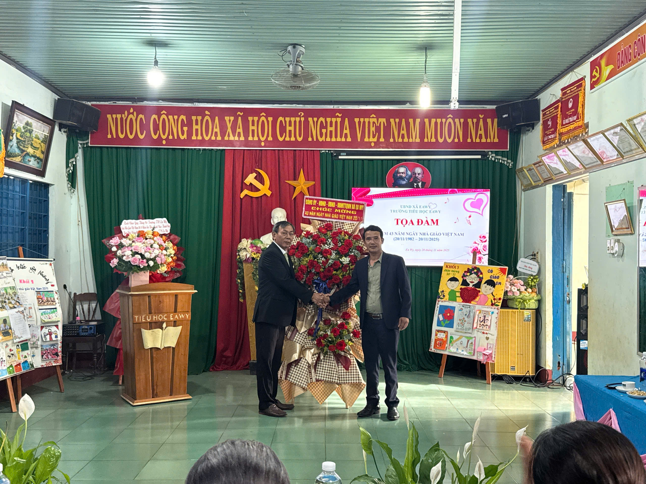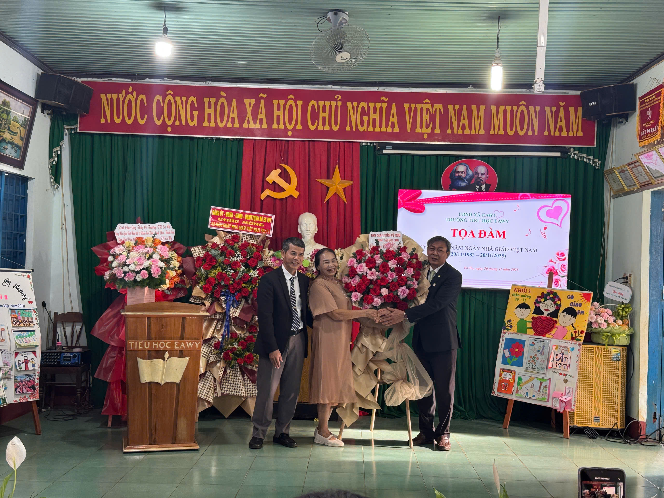 Ngày 20/11/2025, trường Tiểu học Ea Wy tổ chức buổi tọa đàm kỉ niệm 43 năm ngày Nhà giáo Việt Nam ( 20/11/1982 – 20/11/2025). Về dự buổi Tọa đàm, về phía địa phương có đồng chí Nguyễn Đình Hoạt, Bí thư Đảng ủy – Chủ tịch HĐND xã Ea Wy; đồng chí Lương Hoài Nam – Phó CVP Đảng ủy xã Ea Wy; anh Triệu Văn Linh – Phó trưởng Ban đại diện CMHS và 6 giáo viên nhà trường đã nghỉ hưu cùng toàn thể CBGV-NV nhà trường.