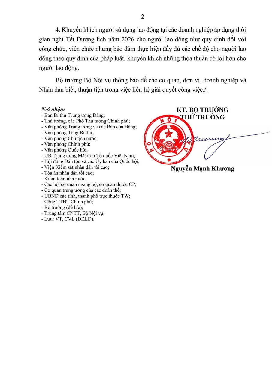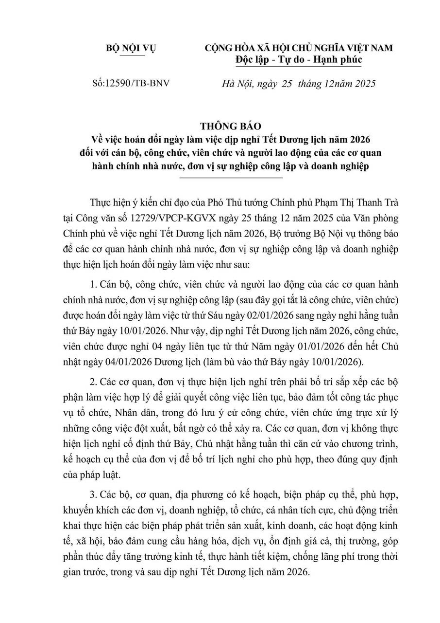 THÔNG BÁO LỊCH NGHỈ TẾT DƯƠNG LỊCH 2026
